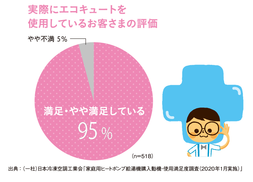 A.エコキュートは、空気の熱を有効に利用してお湯をつくるヒートポンプ式の高効率給湯機です。